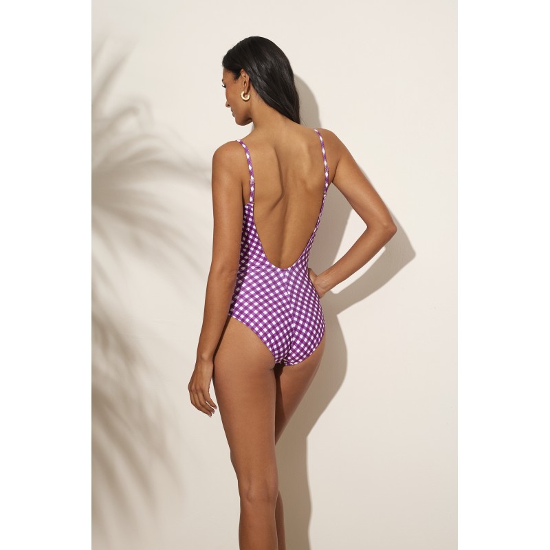 Bañador de mujer de escote cuadrado. Con copa interior, sin aro y tirantes cruzados. Con un estampado muy estético y juvenil que realzará tu figura. Una pieza perfecta para este verano.