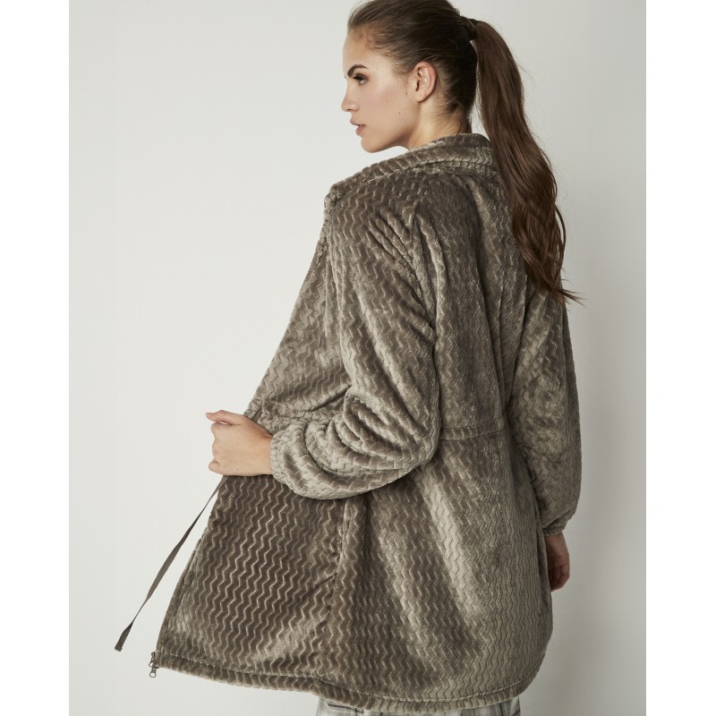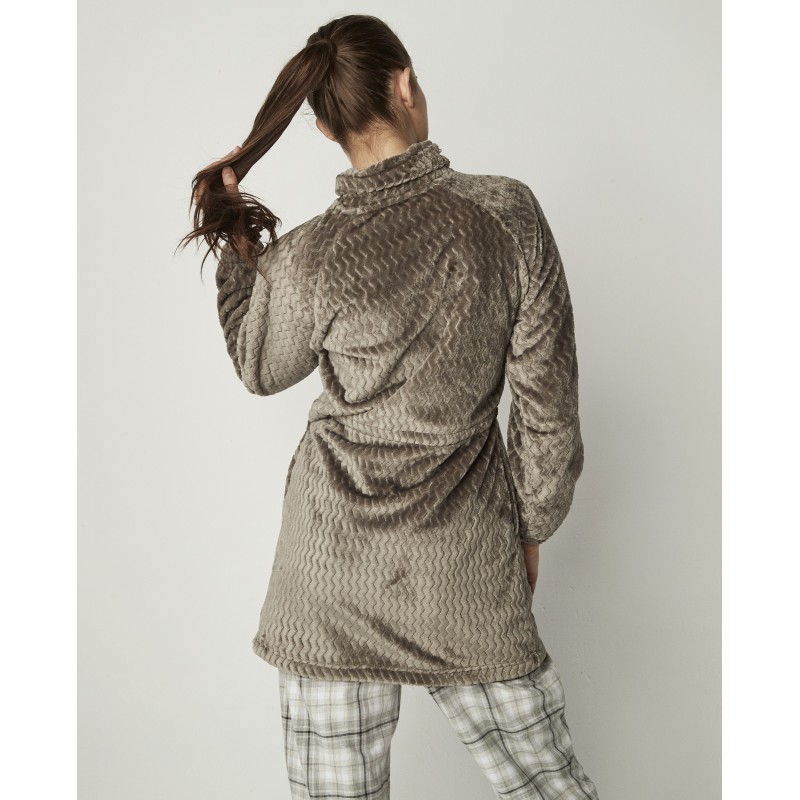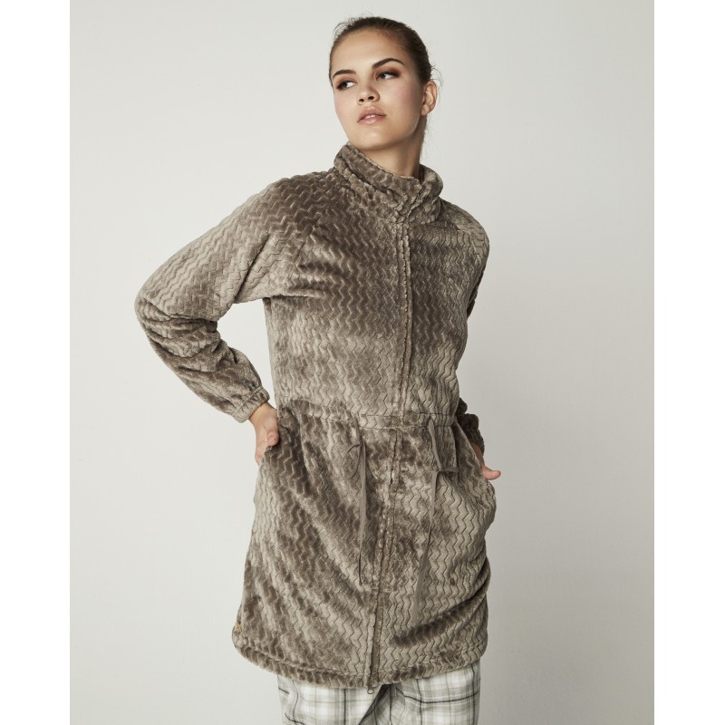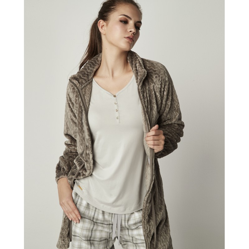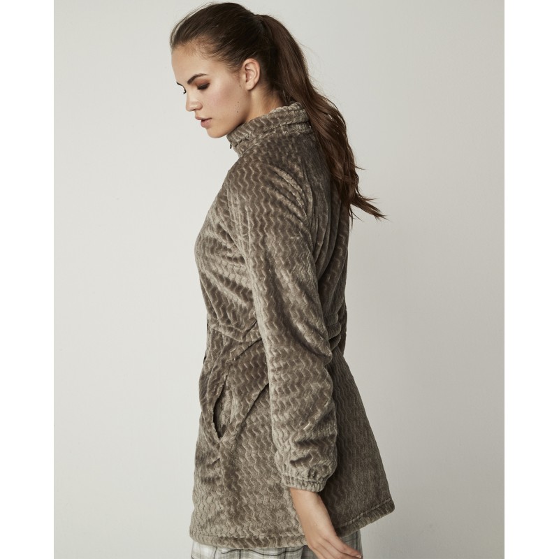 Bata de polar super suave con cremallera, lazo a la cintura y bolsillos. Una prenda muy abrigada ideal para llevar sobre tu pijama o camisón en días fríos.