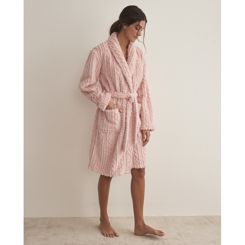 Bata cruzada de polar super suave con lazo a la cintura y bolsillos. Una prenda muy abrigada ideal para llevar sobre tu pijama o camisón en días fríos.