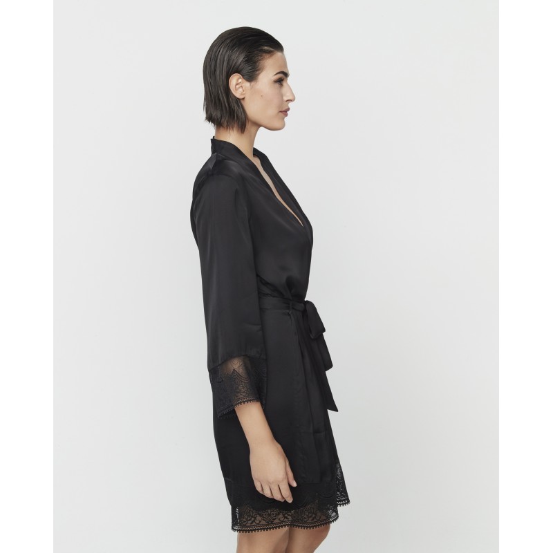 Bata lencera corta con lazo. Su presencia se realza con un estilo elegante y atrevido con detalles de encaje, símbolo de sofisticación y glamour. Su diseño impresionante rinde homenaje a las noches memorables y pertenece a la colección Aurum, creada en colaboración con Pilar Rubio para conmemorar nuestro 50 aniversario.