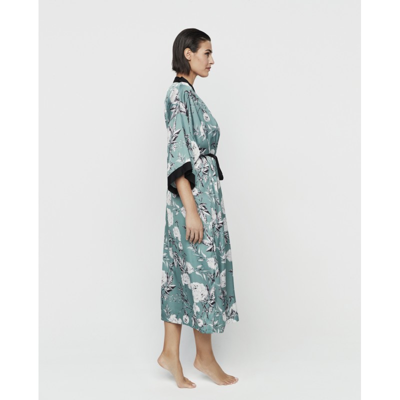 Bata lencera larga de media manga y lazada a la cintura. De estampado floral. Una prenda elegante y sofisticada. La colección Malitzia, a la que pertenece, representa una danza perfecta entre lo delicado y lo atrevido.