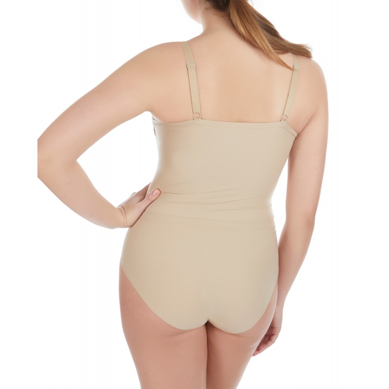 Body estilo camiseta con braga. Posee una abertura trasera ultraelástica que lo convierte en una pieza única y funcional. Tiene copas interiores para garantizar una perfecta sujeción.