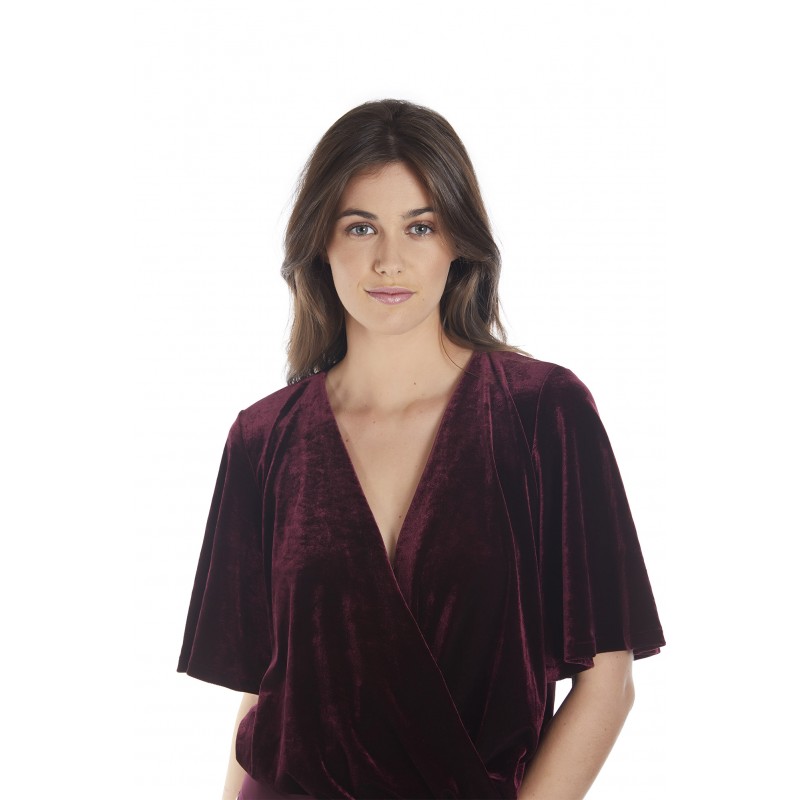 Body camiseta In&Out, escotado y en terciopelo. Con braguita de corte invisible. La colección más especial de homewear ideada para combinar con tus prendas interiores favoritas. Crea looks perfectos para fiestas y eventos. De color berenjena.