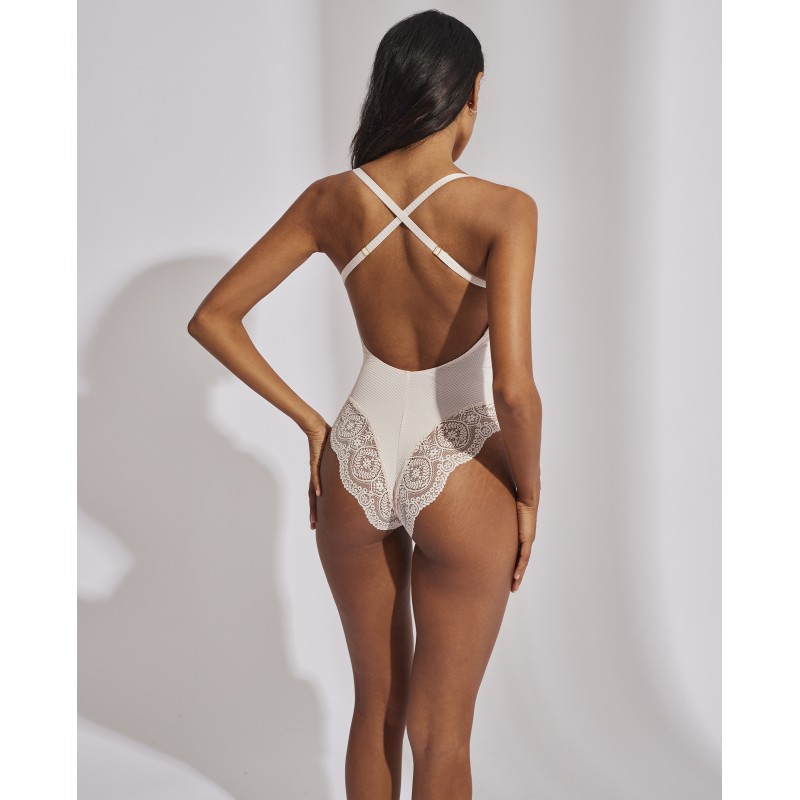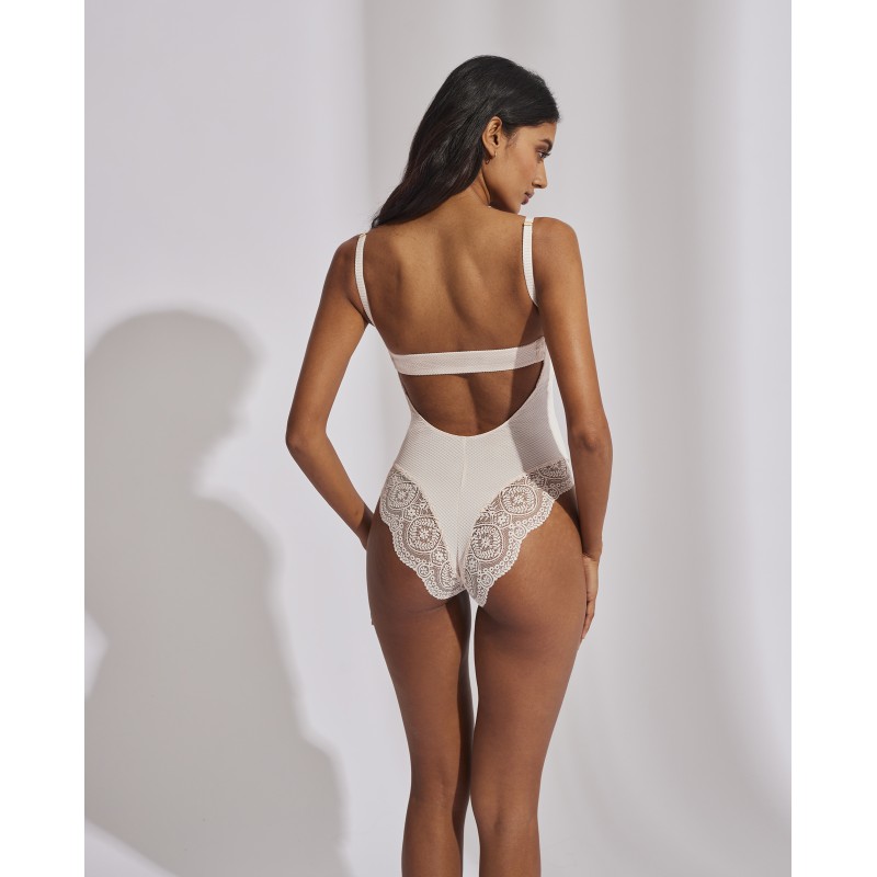 Body confort semicontrol. Con espalda descubierta y multiposición. Estiliza la figura sin perder comodidad y estilo. Su espectacular diseño le otorga un estilo romántico y bohemio a la vez. Este prenda conjuga sensualidad, frescura y elegancia, ideal para mujeres libres y auténticas.