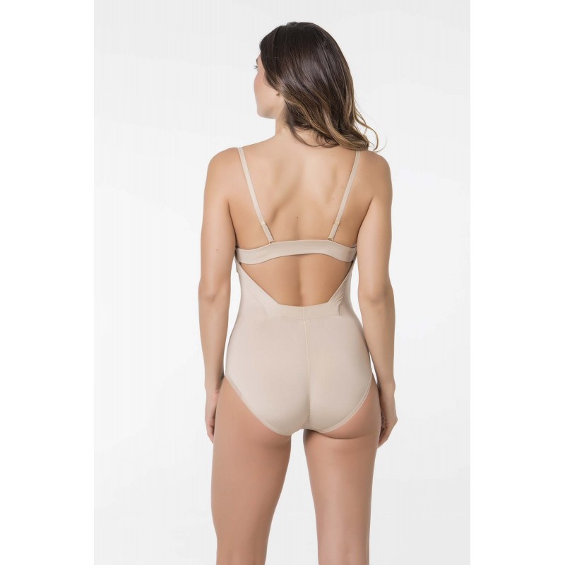 Body confort con espalda al aire. Espaldilla y tirantes extraíbles. Efecto segunda piel. Cómodo, ligero y versátil. De color piel.