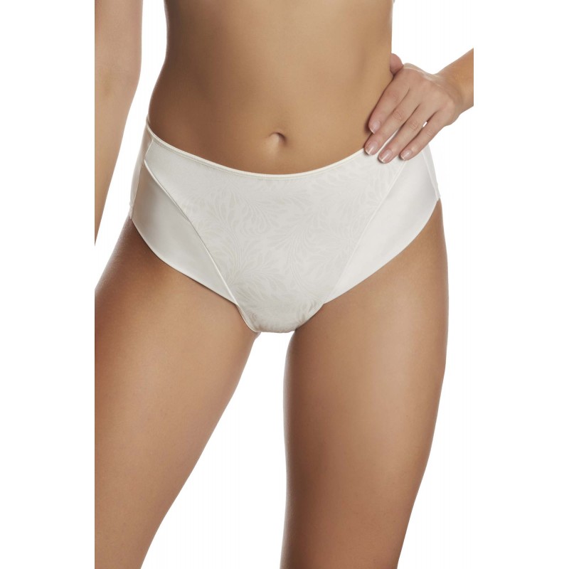 Braga alta clásica con tejido combinado. El juego de brillos sobre el tejido mate convierte esta prenda básica en una pieza muy elegante.