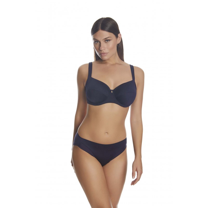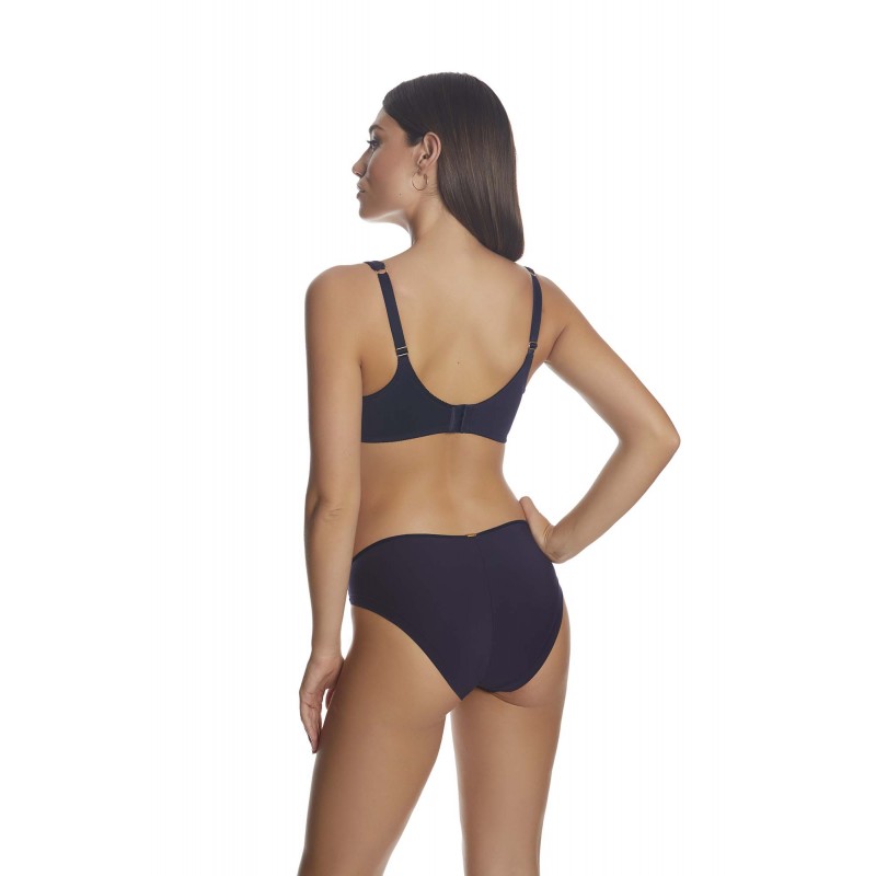 Braga bikini con tejido combinado. El juego de brillos sobre el tejido mate convierte esta prenda básica en una pieza muy elegante. La costura central trasera permite una mayor adaptación y los remates son invisibles en las piernas para evitar marcas.