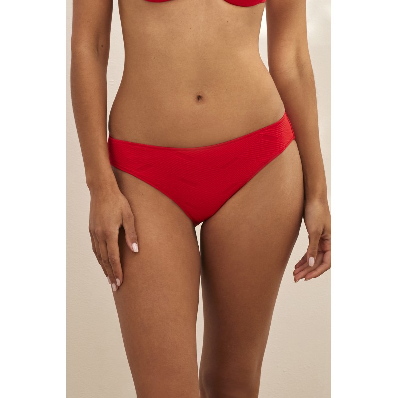 Braga de bikini de corte clásico. Confeccionada con tejido reciclado, esta pieza es una excelente alternativa entre tus prendas de baño este verano.