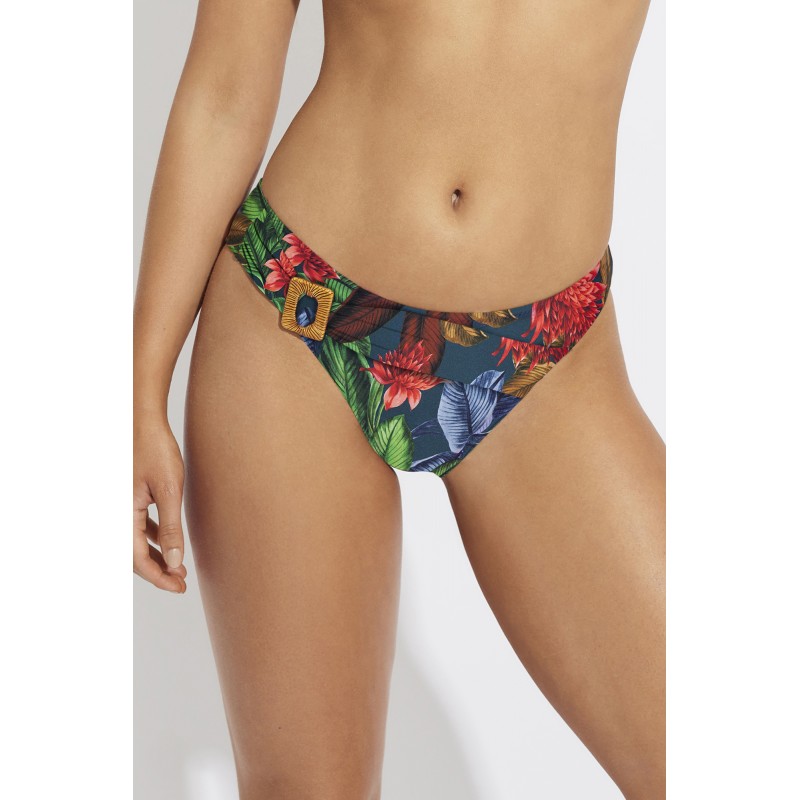 Braga de bikini de corte clásico. Un diseño muy veraniego con estampado tropical. Una pieza cargada de color y frescura.