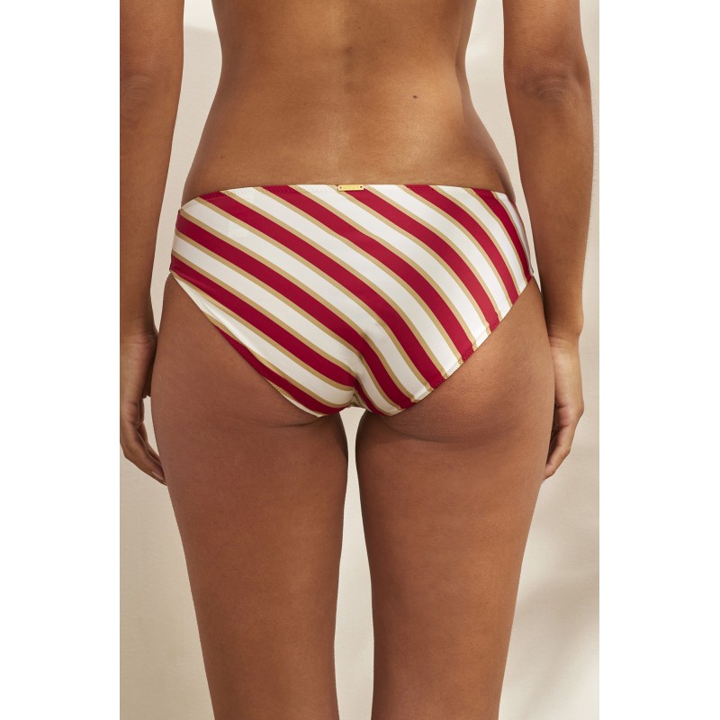Braga bikini de corte clásico. Su diseño trenzado de rayas marineras lo convierte en una pieza estéticamente atractiva y original.
