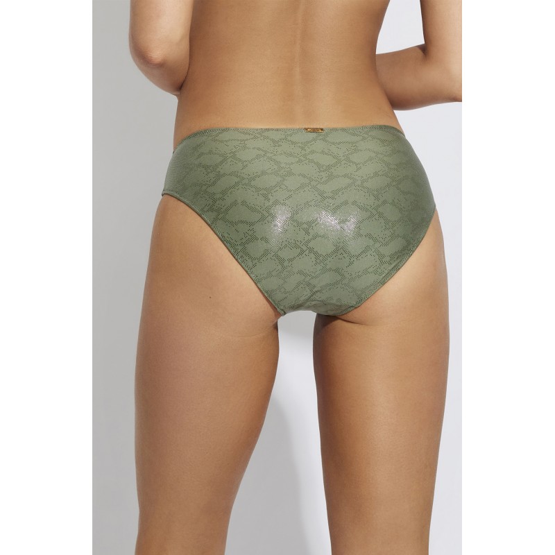 Braga bikini de corte clásico. Con un espectacular tejido reciclado, esta colección tiene un brillo muy especial que captará todas las miradas esta temporada.