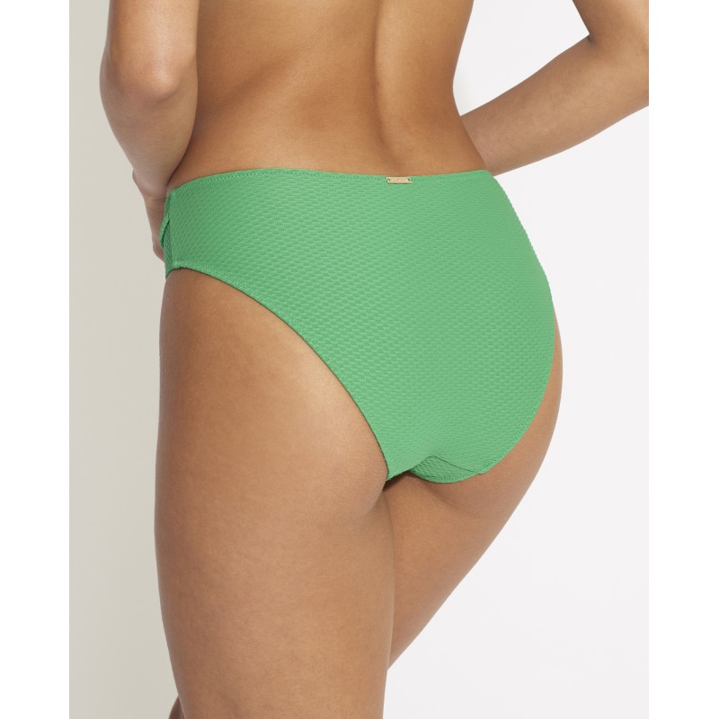 Braga de bikini de corte clásico. Este diseño es sencillo y atemporal, lo que la hace muy versátil y fácil de combinar con diferentes tops de bikini. A su vez, proporciona un ajuste cómodo y seguro.