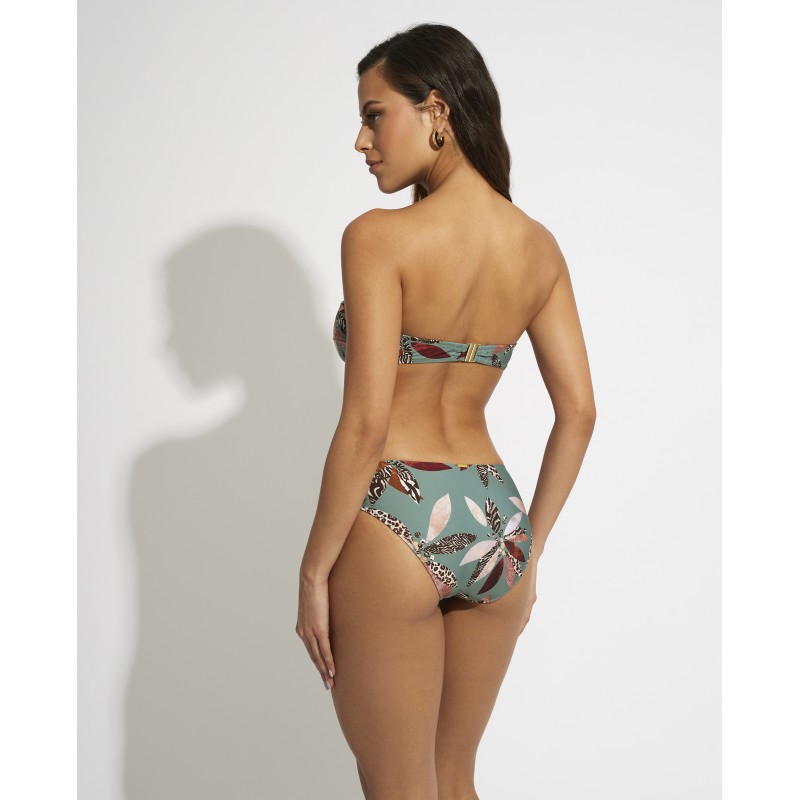 Braga de bikini de corte clásico. Su estampado selvático transmite una sensación de frescura, alegría y exotismo. Es una pieza perfecto para lucir un estilo salvaje y tropical en la playa o la piscina.