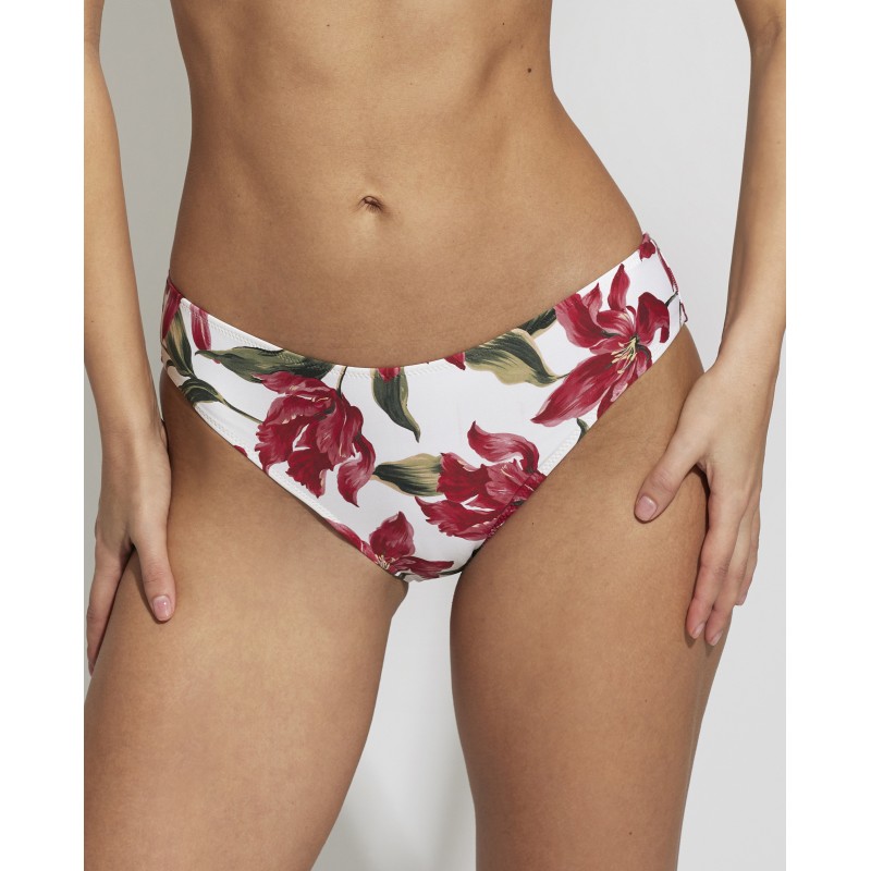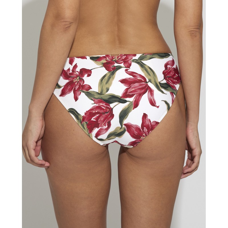 Braga de bikini de corte clásico. Con un estampado tropical que evoca la belleza de una isla paradisíaca. Su color y frescura, transmiten la alegría y la energía de la estación más esperada del año.
