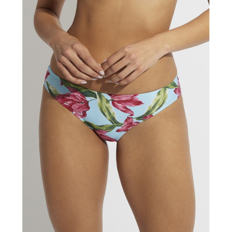Braga de bikini de corte clásico. Con un estampado tropical que evoca la belleza de una isla paradisíaca. Su color y frescura, transmiten la alegría y la energía de la estación más esperada del año.