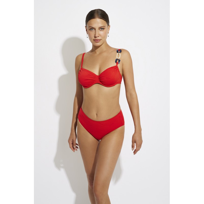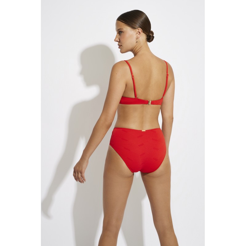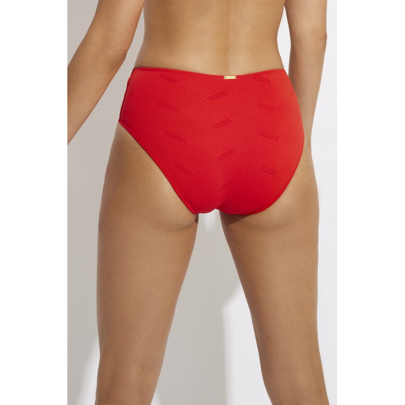 Braga bikini de cintura alta y corte clásico. Confeccionada con tejido reciclado, esta pieza es una excelente alternativa entre tus prendas de baño este verano.