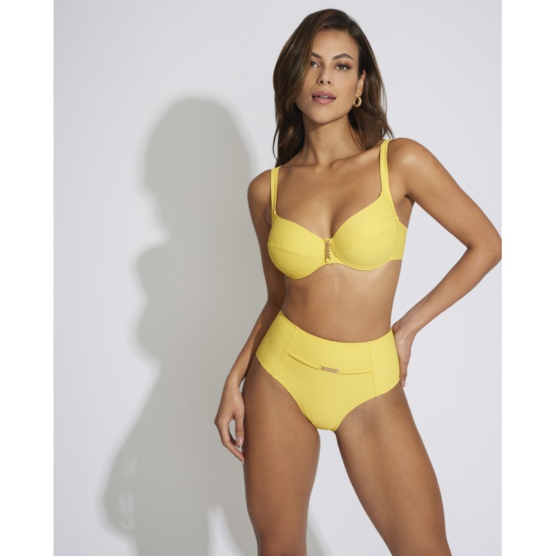 Braga de bikini de cintura alta y corte clásico. Este diseño es sencillo y atemporal, lo que la hace muy versátil y fácil de combinar con diferentes tops de bikini y que no pasa de moda. A su vez, proporciona un ajuste cómodo y seguro.