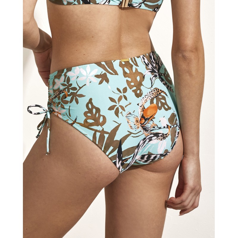 Braga de bikini alta de corte clásico. Su diseño captura la energía de la naturaleza, con estampados que te transportan a paisajes vívidos y misteriosos de la selva amazónica.