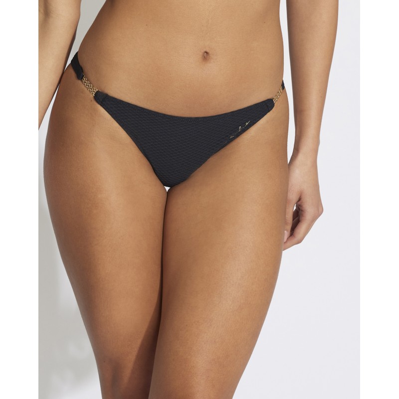 Braga de bikini brasileña. Este diseño es sencillo y atemporal, lo que la hace muy versátil y fácil de combinar con diferentes tops de bikini y que no pasa de moda. A su vez, proporciona un ajuste cómodo y seguro.