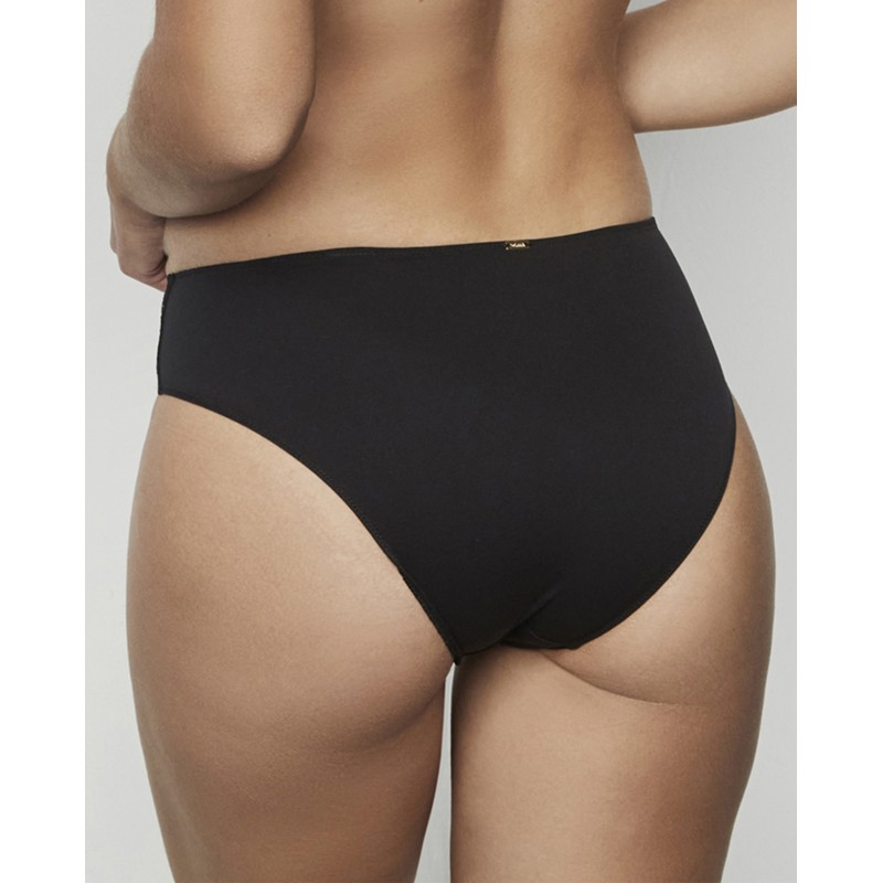 Braguita bikini de corte clásico combinada con encaje floral en sus laterales, lo que aporta suavidad y detalle exquisito a la prenda. La goma de su cintura no marca. Se trata de una prenda delicada y sofisticada. La colección Agatha, a la que pertenece, encarna la madurez y el esplendor de la marca, ofreciendo piezas que no solo adornan, sino que transforman. Una colección con encanto y carisma.