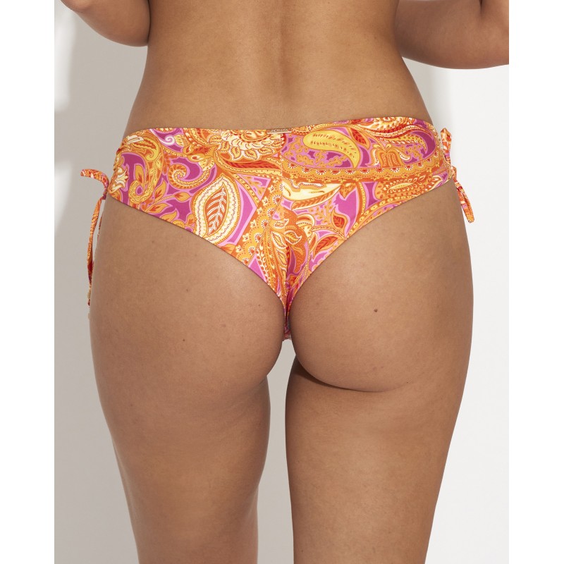 Braga de bikini culotte. Su diseño étnico le da un toque de originalidad y estilo único, haciendo que esta pieza sea diferente a los demás. Sus colores vibrantes resaltan tus curvas de una manera sutil pero impactante.