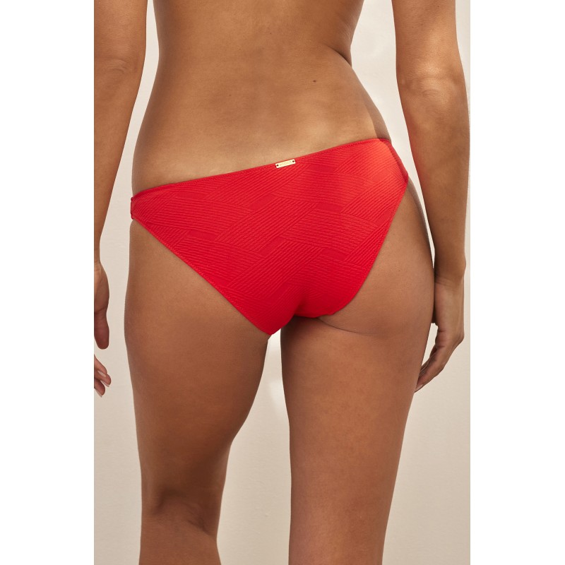Braga de bikini de tiro bajo con nudos ajustables. Confeccionada con tejido reciclado, esta pieza es una excelente alternativa entre tus prendas de baño este verano.