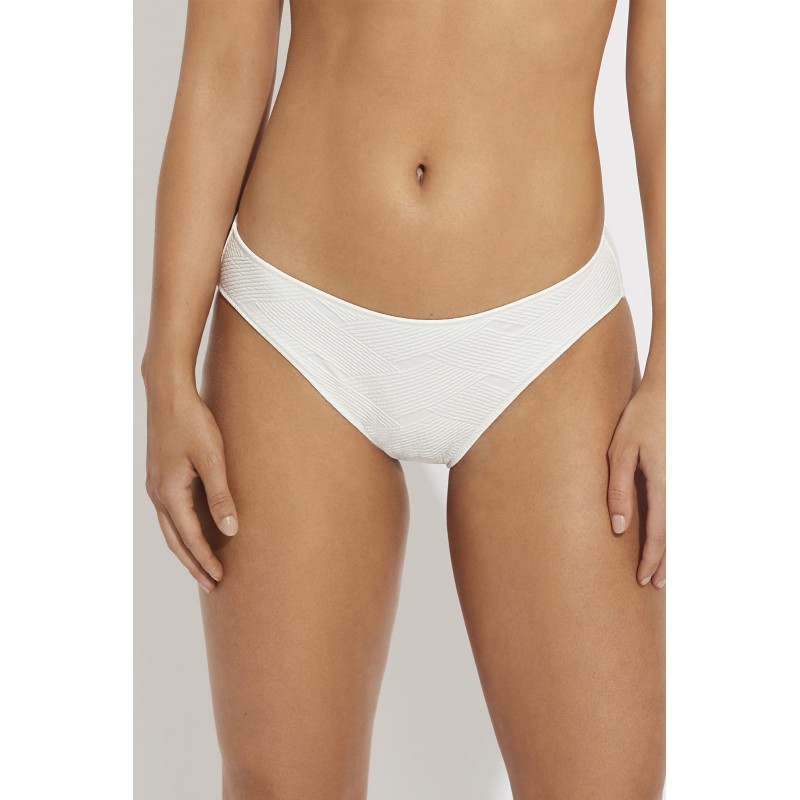Braga de bikini de tiro bajo con nudos ajustables. Confeccionada con tejido reciclado, esta pieza es una excelente alternativa entre tus prendas de baño este verano.