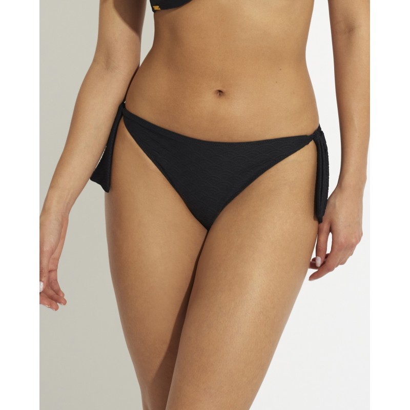 Braga de bikini de tiro bajo y nudos para ajustarla. Su diseño sencillo y color puro le dan un toque sofisticado y seductor para resaltar tu figura y sentirte cómoda y segura.