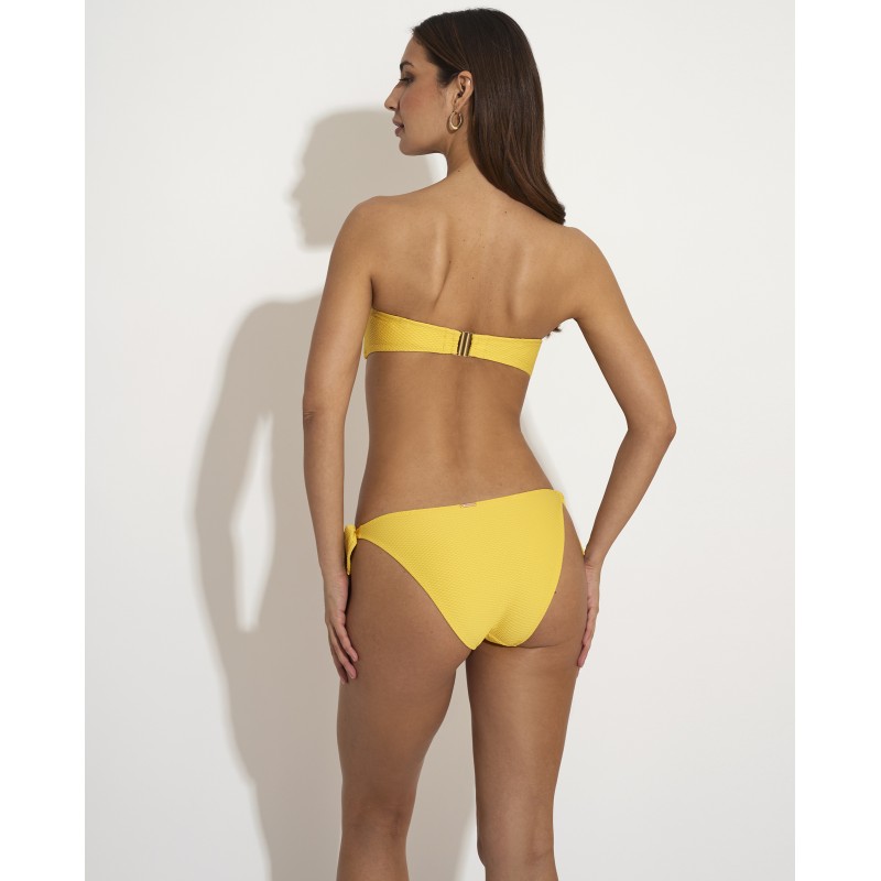 Braga de bikini de tiro bajo y nudos para ajustarla. Este diseño es sencillo y atemporal, lo que la hace muy versátil y fácil de combinar con diferentes tops de bikini y que no pasa de moda. A su vez, proporciona un ajuste cómodo y seguro.
