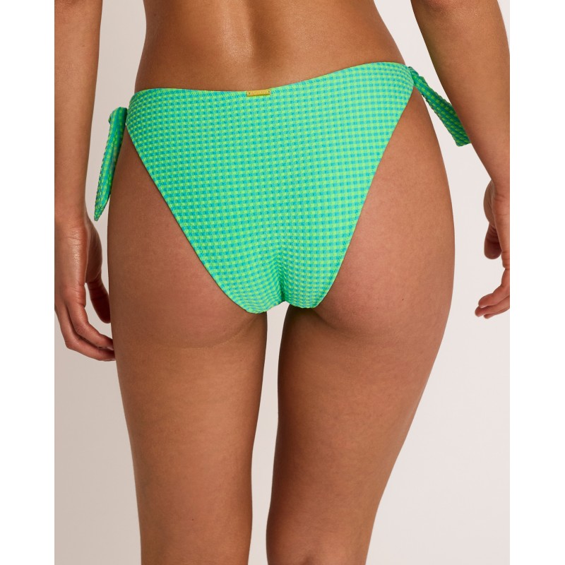 Braga de bikini de tiro bajo con lazos para atar. Esta pieza de tonalidad luminosa y diseño de trama delicada realza la silueta con discreción y elegancia.