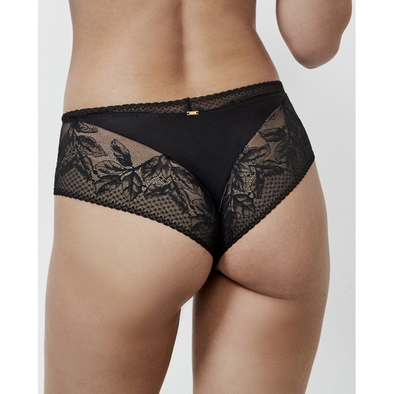 Braguita de corte culotte con encaje floral en parte delantera y trasera, lo que aporta suavidad y detalle exquisito a la prenda. La goma de su cintura no marca. La colección Malitzia, a la que pertenece, representa una danza perfecta entre lo delicado y lo atrevido.