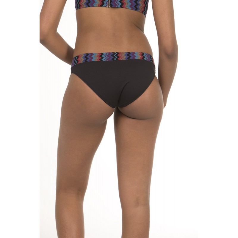 Braga de bikini de corte clásico. Lisa con una banda en la cintura con estampado de zigzag. De color negro.