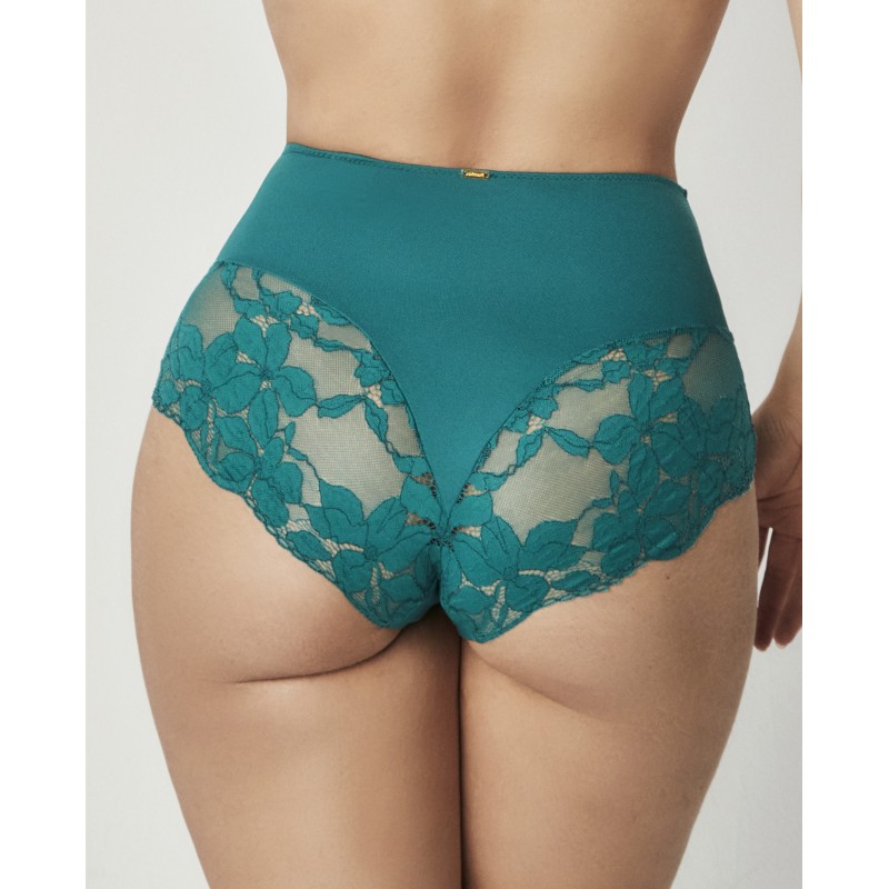 Braguita moldeadora de cintura muy alta con pequeños detalles de encaje floral. Posee tul de control interior. Una pieza de lencería sofisticada en la que elegancia y confort van de la mano. La colección Federica, a la que pertenece, se caracteriza por formas y estructuras trabajadas con precisión para realzar los contornos de cada mujer y empoderar su confianza, celebrando la individualidad y la feminidad en su máxima expresión.