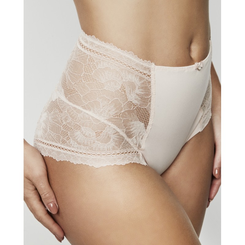 Braguita moldeadora de cintura muy alta con pequeños detalles de encaje floral. Posee tul de control interior. Se trata de una prenda delicada y sofisticada. La colección Agatha, a la que pertenece, encarna la madurez y el esplendor de la marca, ofreciendo piezas que no solo adornan, sino que transforman. Una colección con encanto y carisma.