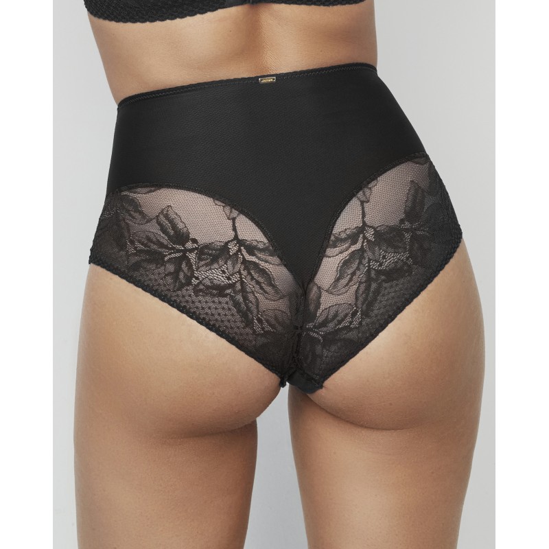 Braguita moldeadora de cintura muy alta con pequeños detalles de encaje floral. Posee tul de control interior. Se trata de una prenda cuidada y sofisticada. La colección Malitzia, a la que pertenece, representa una danza perfecta entre lo delicado y lo atrevido.