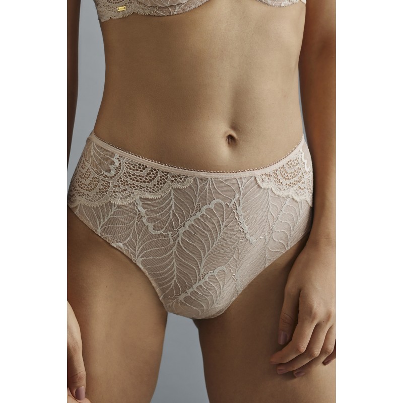 Braguita alta clásica de estética muy cuidada y ultra femenina. Su blonda evoca la naturaleza de las hojas convirtiéndola en una prenda elegante y atrevida.