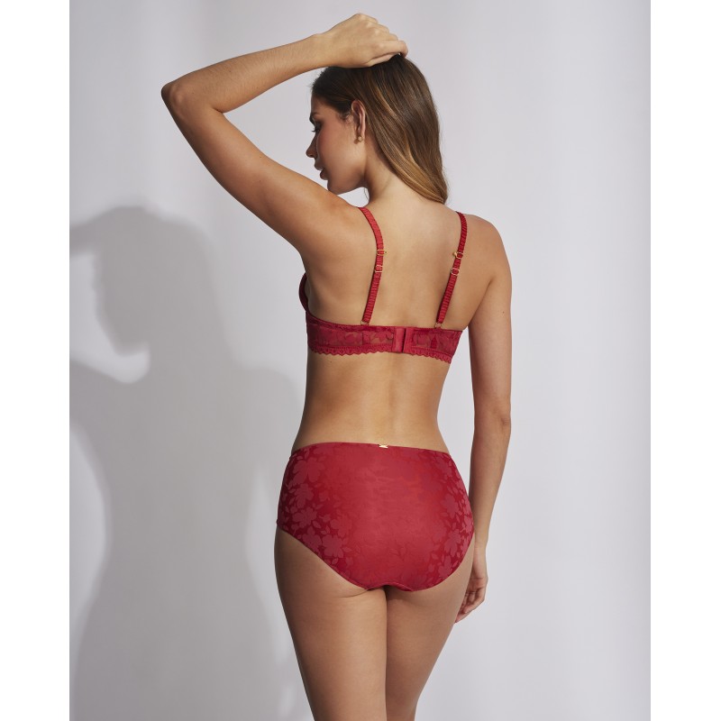 Braguita alta con delicados detalles de encaje. Esta prenda es una promesa de momentos especiales, un toque de misterio y seducción que transforma el poder de la feminidad en su forma más refinada y cautivadora.