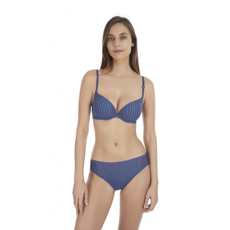 Braga de corte bikini con una estética y un patrón básico y minimalista. Cómoda y perfecta para el día a día. Su tejido 100% ecológico la convierte en una prenda comprometida con el entorno.