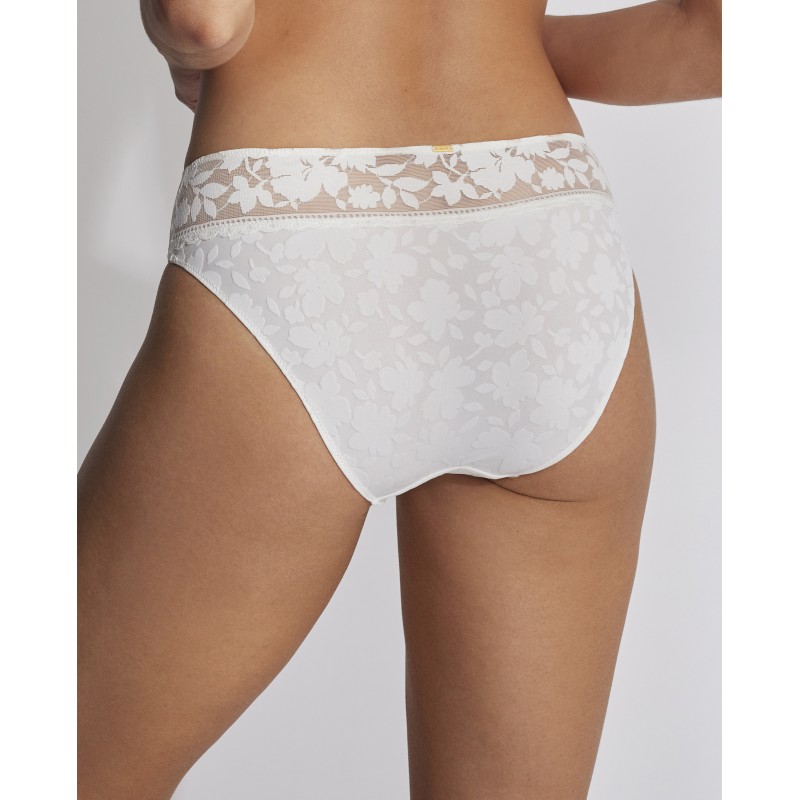 Braguita bikini con delicados detalles de encaje. Esta prenda es una promesa de momentos especiales, un toque de misterio y seducción que transforma el poder de la feminidad en su forma más refinada y cautivadora.