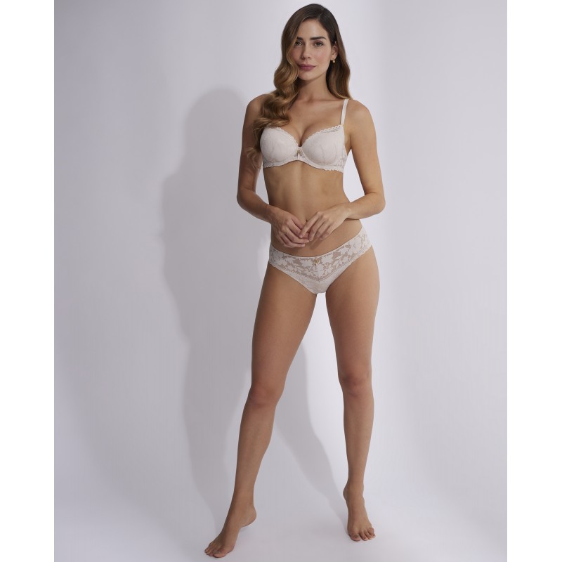 Braga bikini con delicados detalles de encaje. Esta prenda es una promesa de momentos especiales, un toque de misterio y seducción que transforma el poder de la feminidad en su forma más refinada y cautivadora.