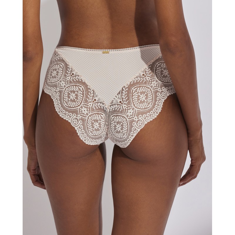 Braguita bikini. Su espectacular diseño de encaje le otorga un estilo romántico y bohemio a la vez. Este prenda conjuga sensualidad, frescura y elegancia, ideal para mujeres libres y auténticas.