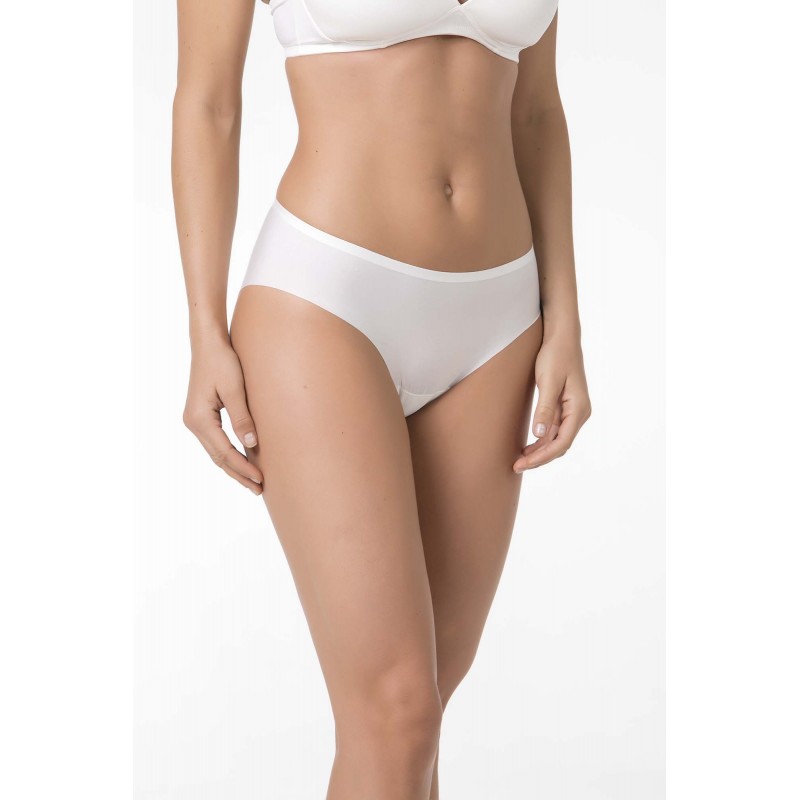 Braguita bikini ultra invisible sin costuras. Muy suave y cómoda, no marca bajo la ropa. De color marfil.