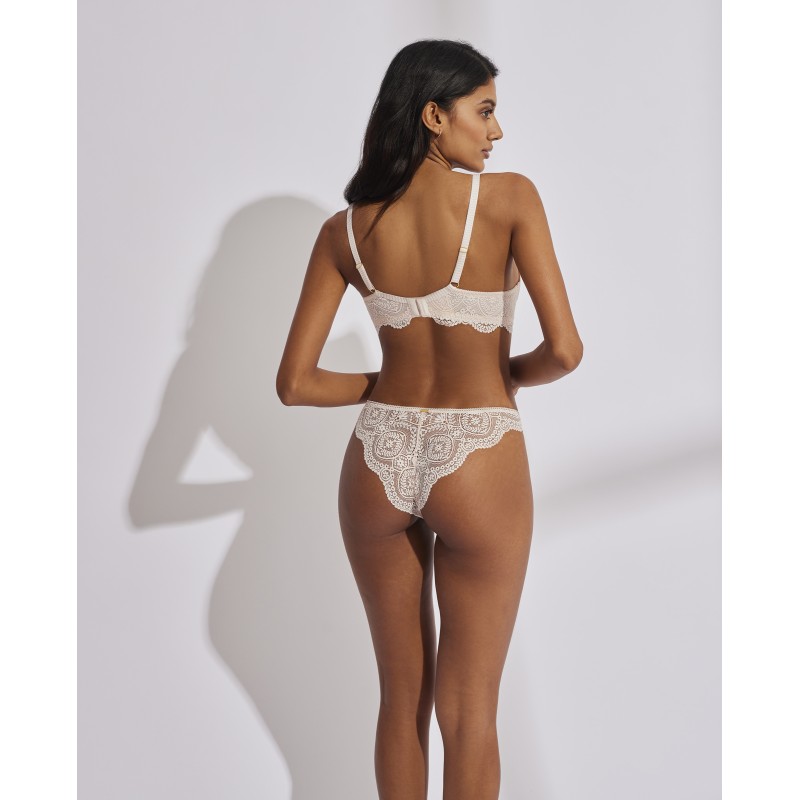 Braguita brasileña. Su espectacular diseño de encaje le otorga un estilo romántico y bohemio a la vez. Este prenda conjuga sensualidad, frescura y elegancia, ideal para mujeres libres y auténticas.