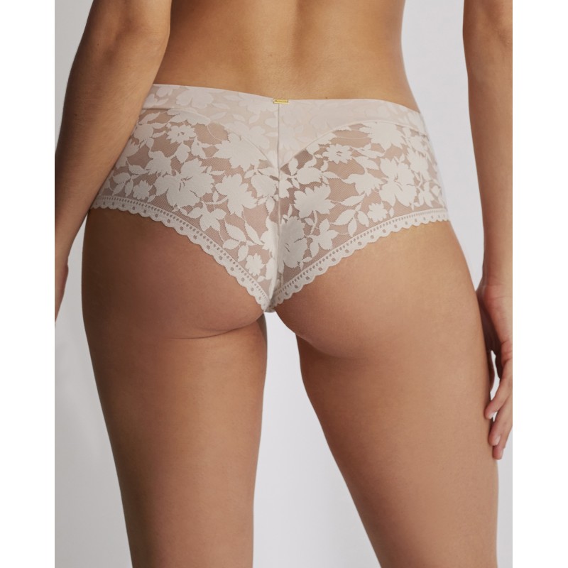 Braguita culotte con delicados detalles de encaje. Esta prenda es una promesa de momentos especiales, un toque de misterio y seducción que transforma el poder de la feminidad en su forma más refinada y cautivadora.