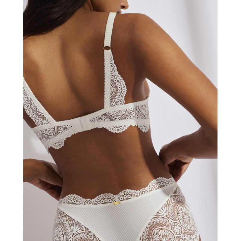 Braguita culotte. Su espectacular diseño de encaje le otorga un estilo romántico y bohemio a la vez. Este prenda conjuga sensualidad, frescura y elegancia, ideal para mujeres libres y auténticas.