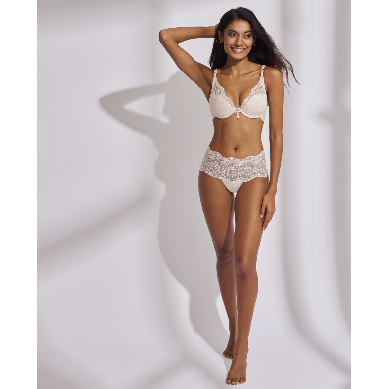Braguita culotte. Su espectacular diseño de encaje le otorga un estilo romántico y bohemio a la vez. Este prenda conjuga sensualidad, frescura y elegancia, ideal para mujeres libres y auténticas.