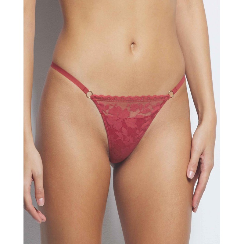 Braguita tanga hilo con delicados detalles de encaje. Esta prenda es una promesa de momentos especiales, un toque de misterio y seducción que transforma el poder de la feminidad en su forma más refinada y cautivadora.