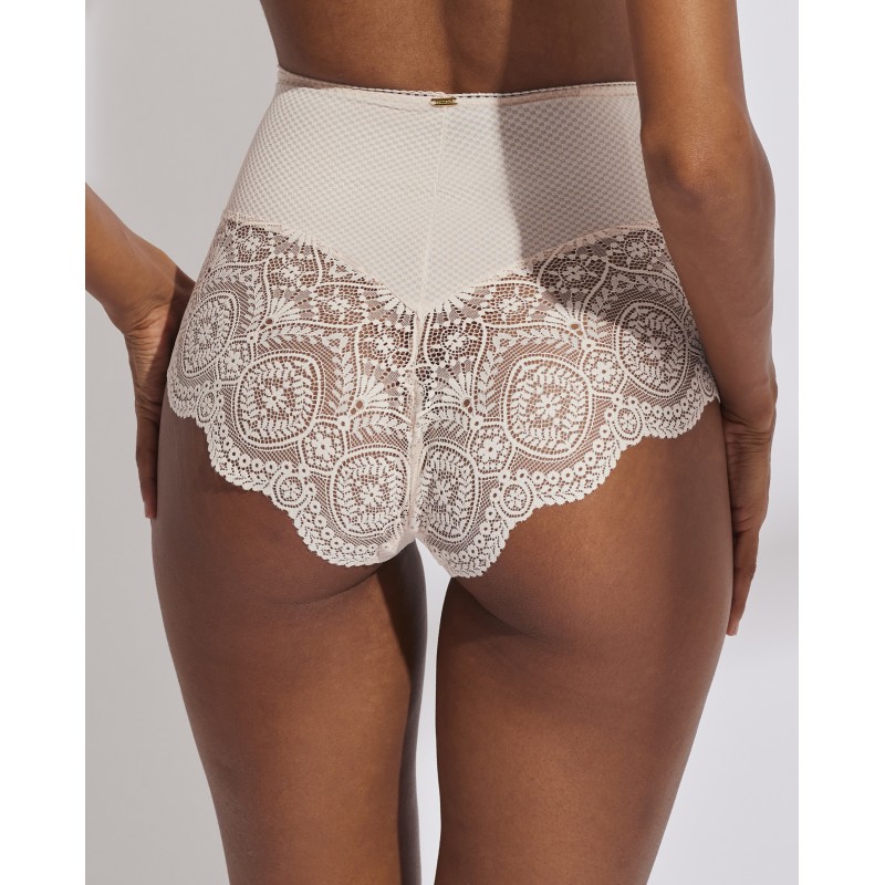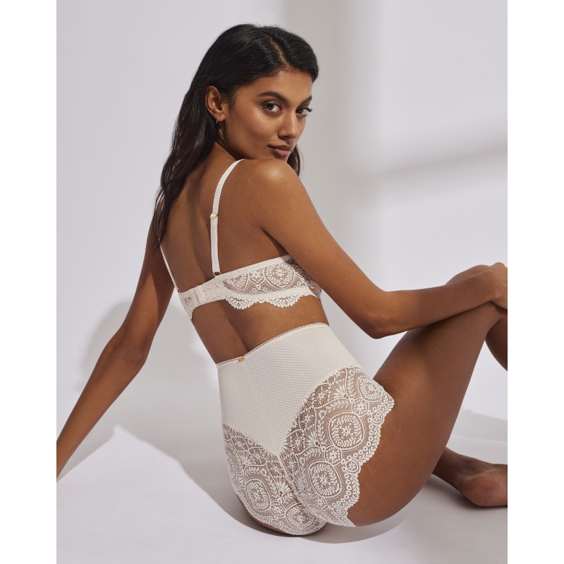 Braguita muy alta clásica. Su espectacular diseño de encaje le otorga un estilo romántico y bohemio a la vez. Este prenda conjuga sensualidad, frescura y elegancia, ideal para mujeres libres y auténticas.