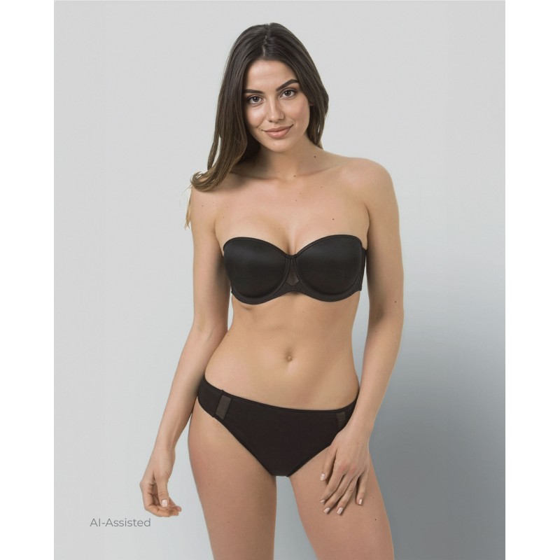 Braguita tanga lisa con transparencias y un diseño cómodo y ligero. No marca costuras y garantiza la máxima sujeción. De color negro.