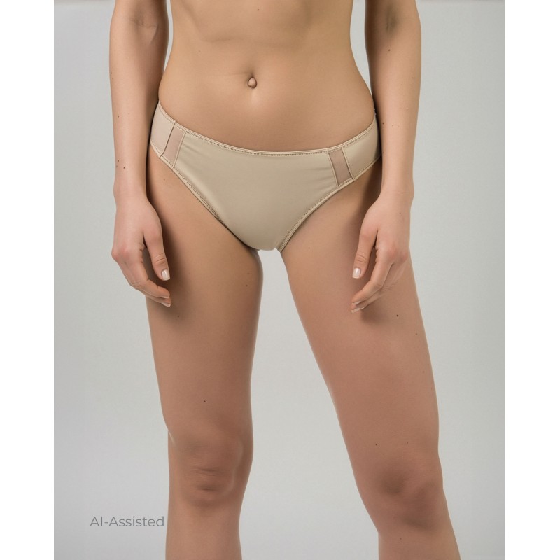 Braguita tanga lisa con transparencias y un diseño cómodo y ligero. No marca costuras y garantiza la máxima sujeción. De color piel.